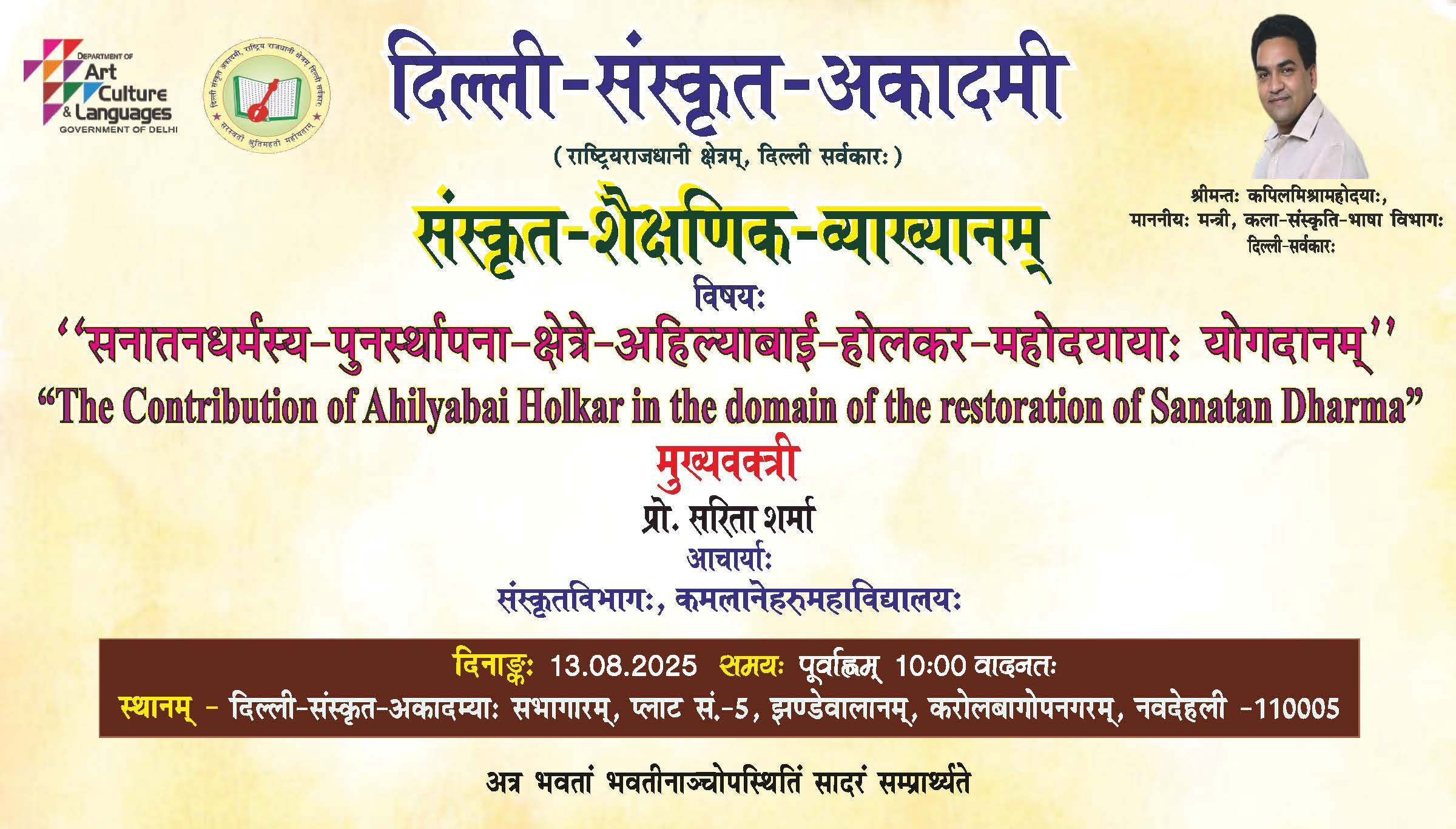 संस्कृत शैक्षणिक व्याख्यान का ‘‘आयोजन सनातन धर्म कि पुर्नस्थापना के क्षेत्र में राजमाता अहिल्याबाई होलकर का योगदान।’’