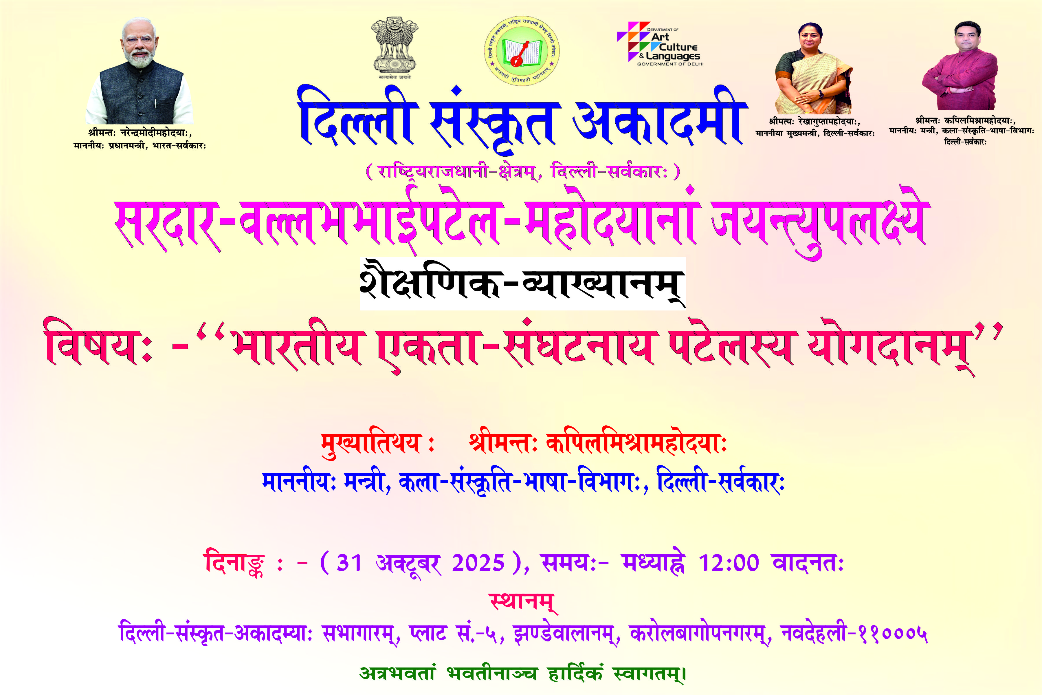 सरदार वल्लभभाई पटेल महोदय की जयन्ती के उपलक्ष्य में ‘‘शैक्षणिक व्याख्यान’’ का आयोजन दिनांक 31-10-2025